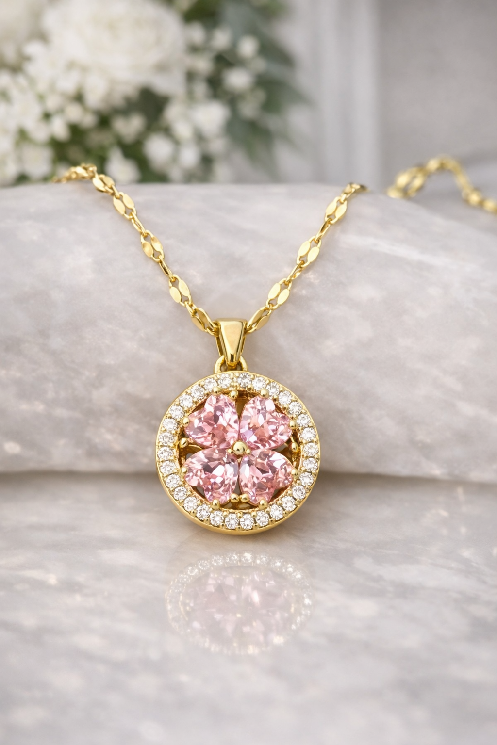 Necklace with a rotating clover mechanism that provides a relaxing tactile experience. Its elegant design makes it a versatile accessory for any occasion, while the spinning motion offers a natural way to relieve tension and stress. Perfect for those seeking a functional accessory that combines style with emotional well-being. A discreet yet effective accessory to help maintain calm throughout the day.